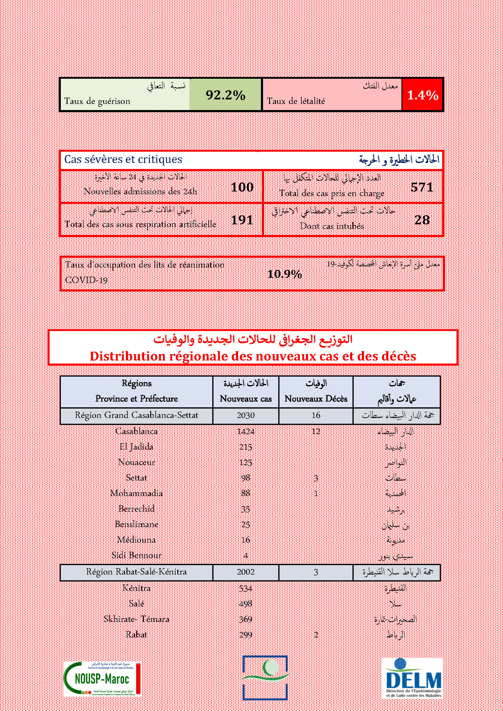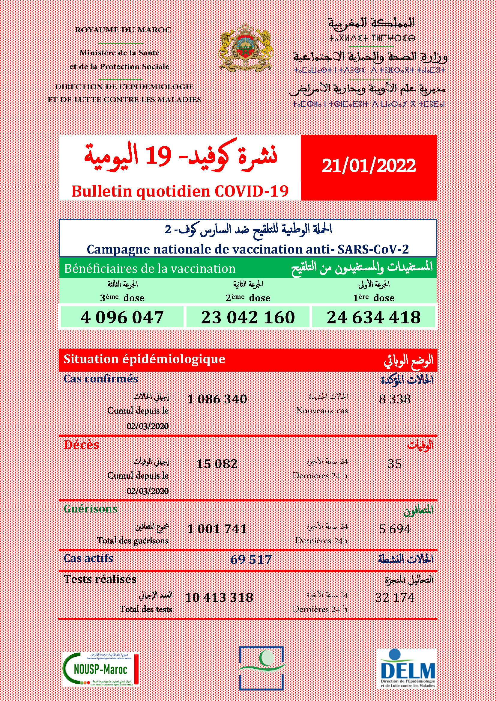 8 338 nouveaux cas soit un cumul de 1 086 340 cas à ce jour.