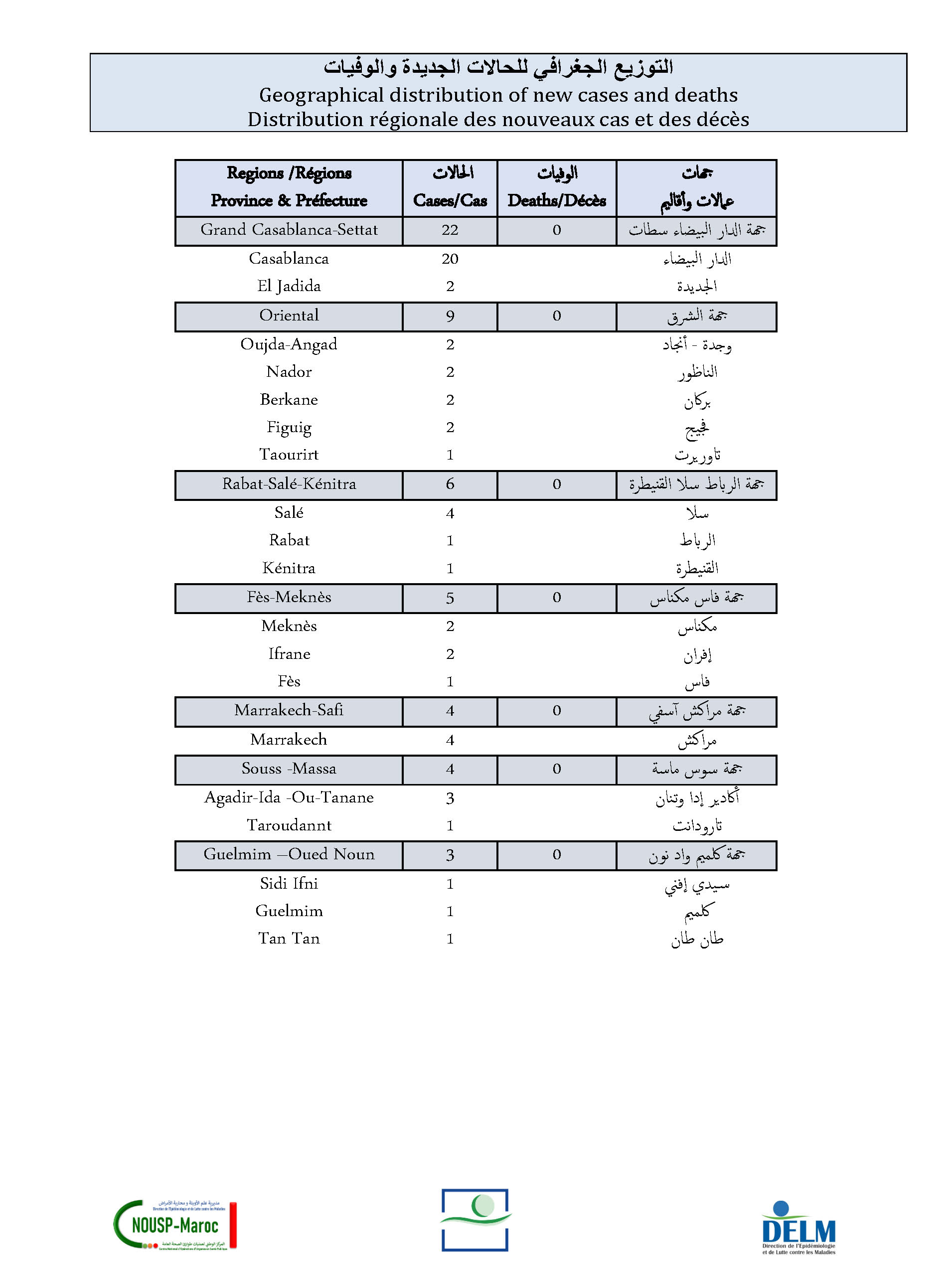 58 nouveaux cas soit un cumul de 1.264.068 cas à ce jour.
