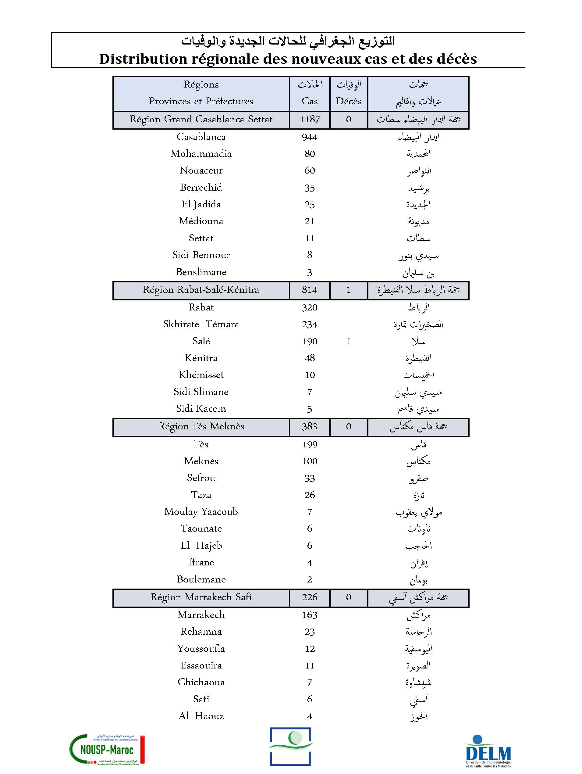 3086 nouveaux cas soit un cumul de 1 195 883 cas à ce jour.