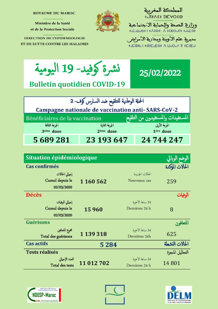625 guérisons soit un cumul de 1 139 318 à ce jour.