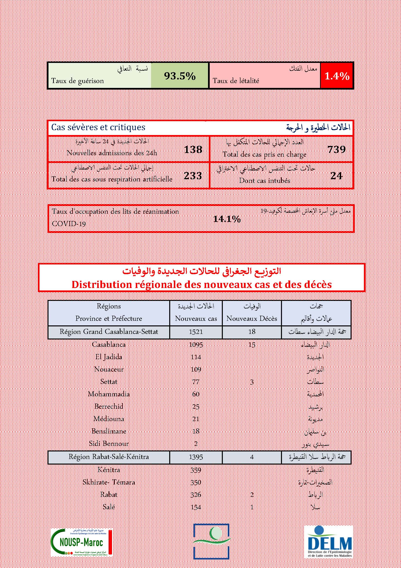 7 002 nouveaux cas soit un cumul de 1 114 527 cas à ce jour.