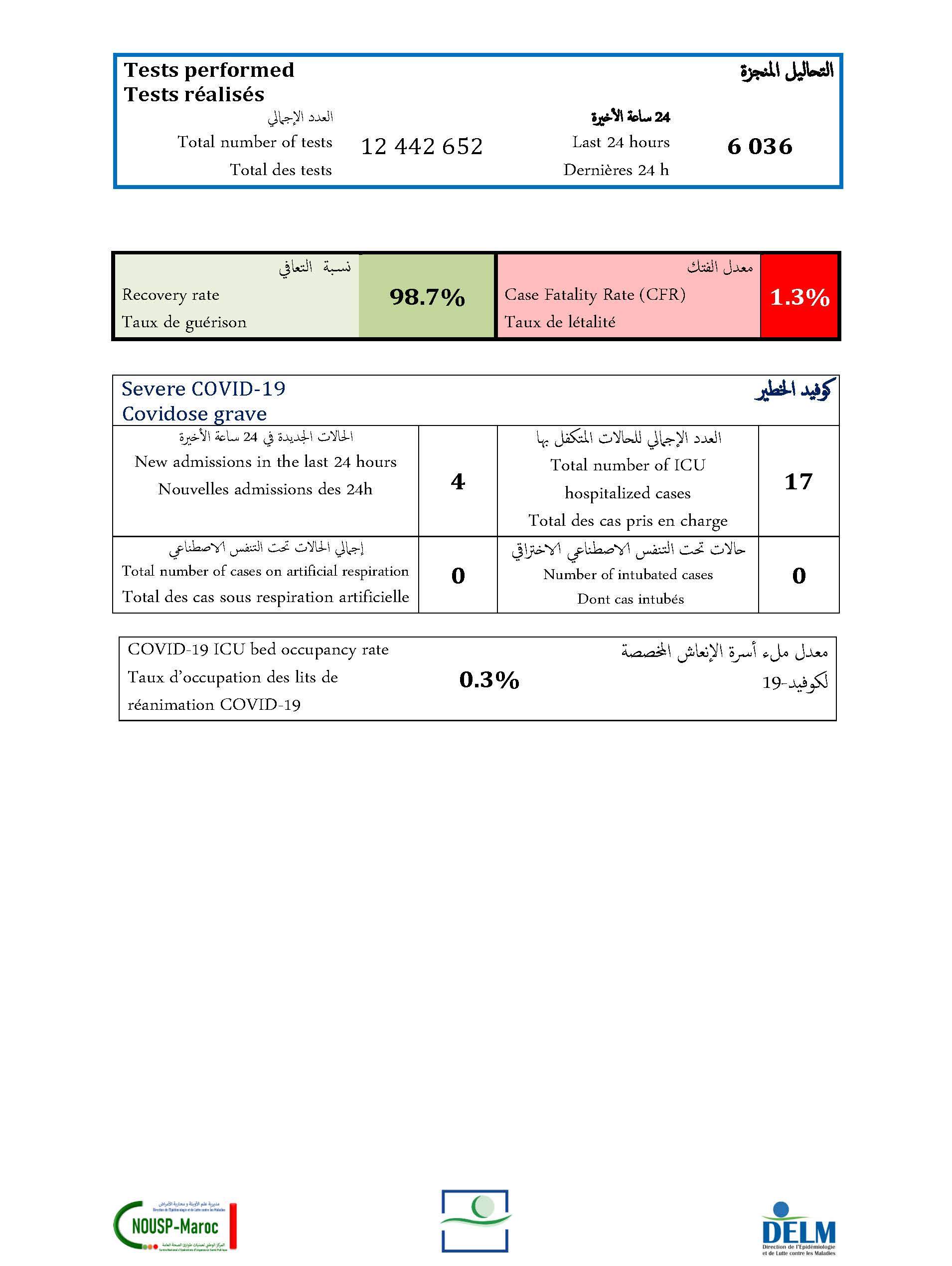31 guérisons soit un cumul de 1 247 652 à ce jour.