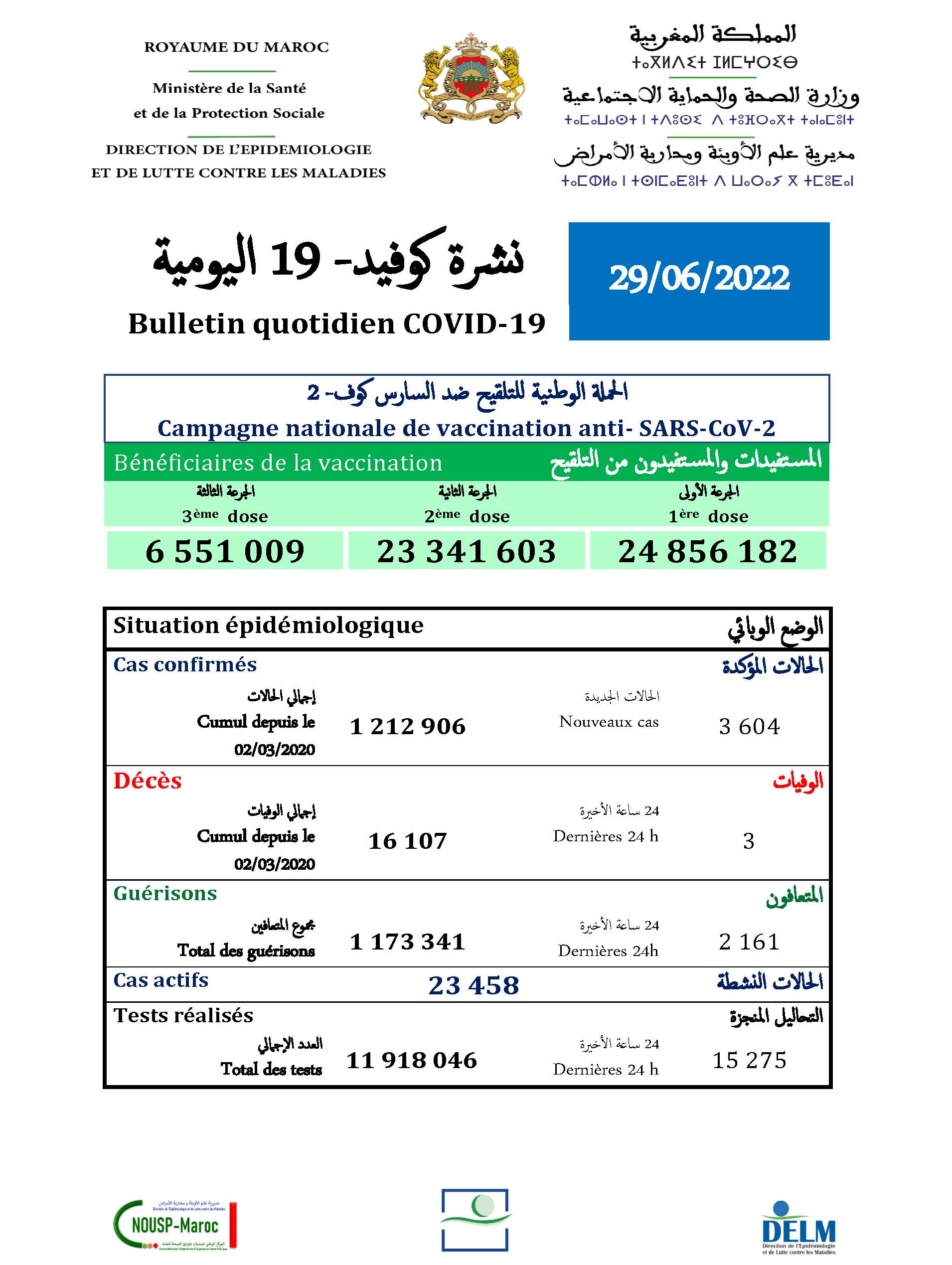 3604 nouveaux cas soit un cumul de 1.209 906 cas à ce jour.