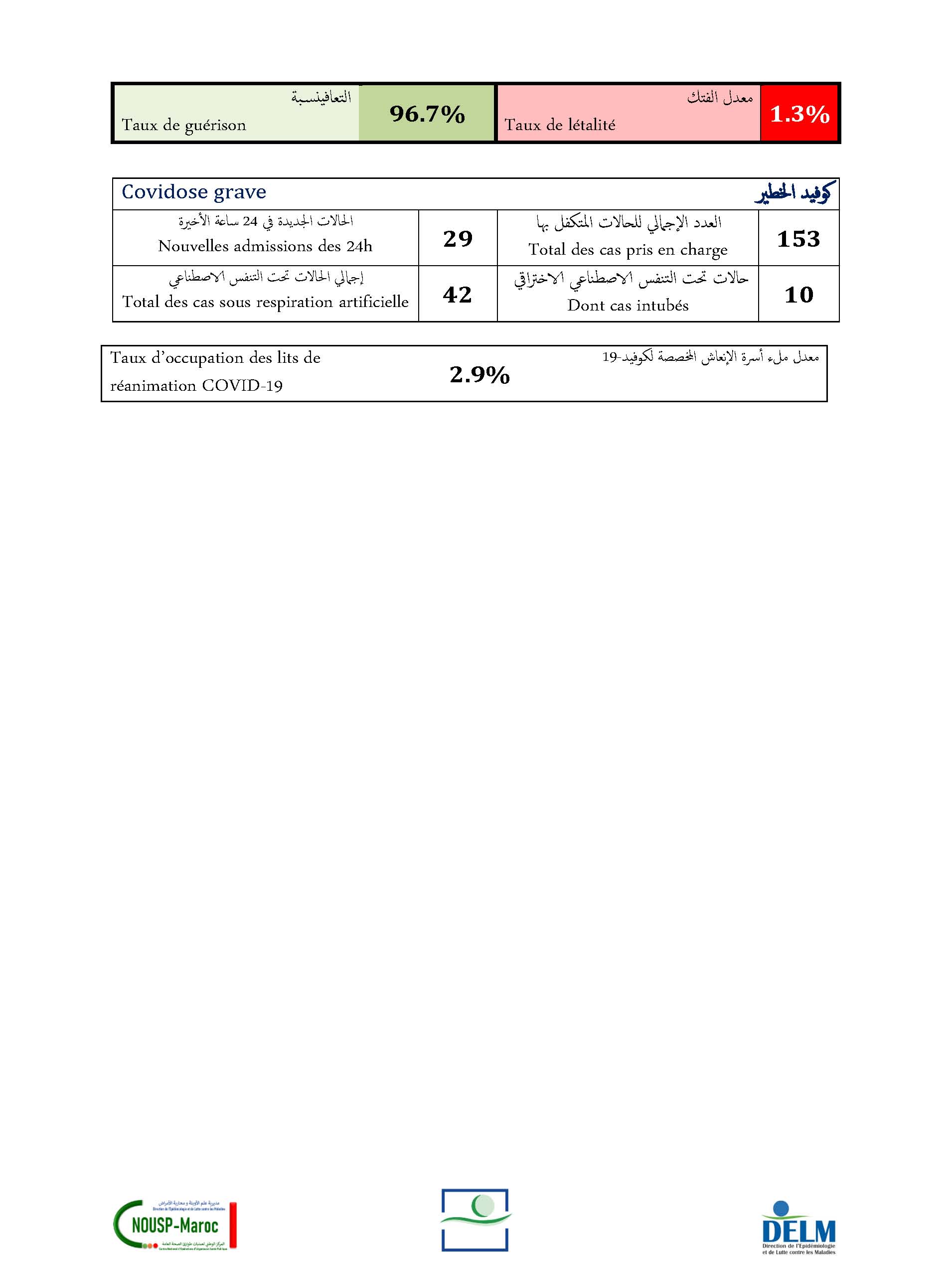 2161 guérisons soit un cumul de 1.171 341 à ce jour.