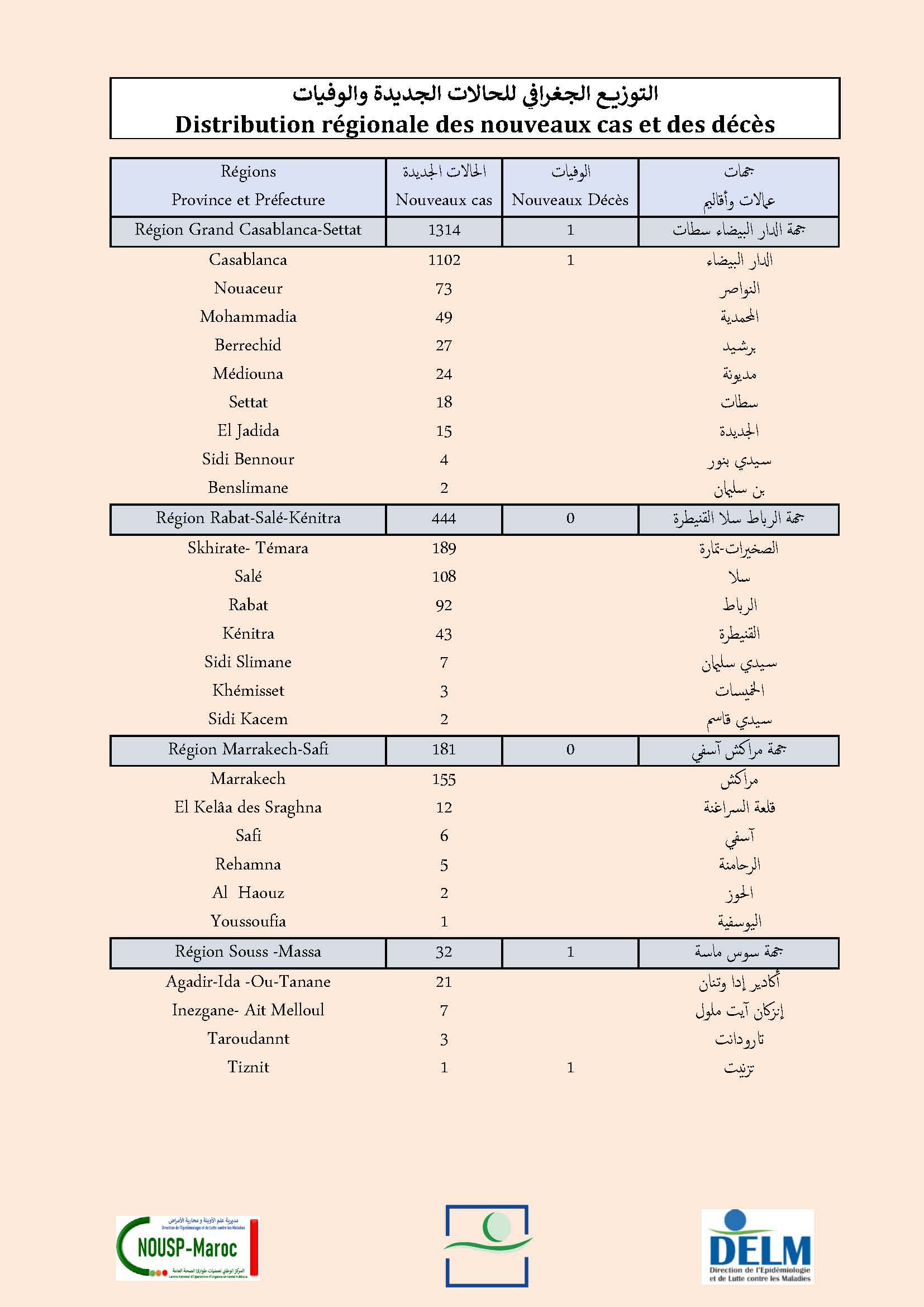 2.034 nouveaux cas soit un cumul de 963.092 cas à ce jour.