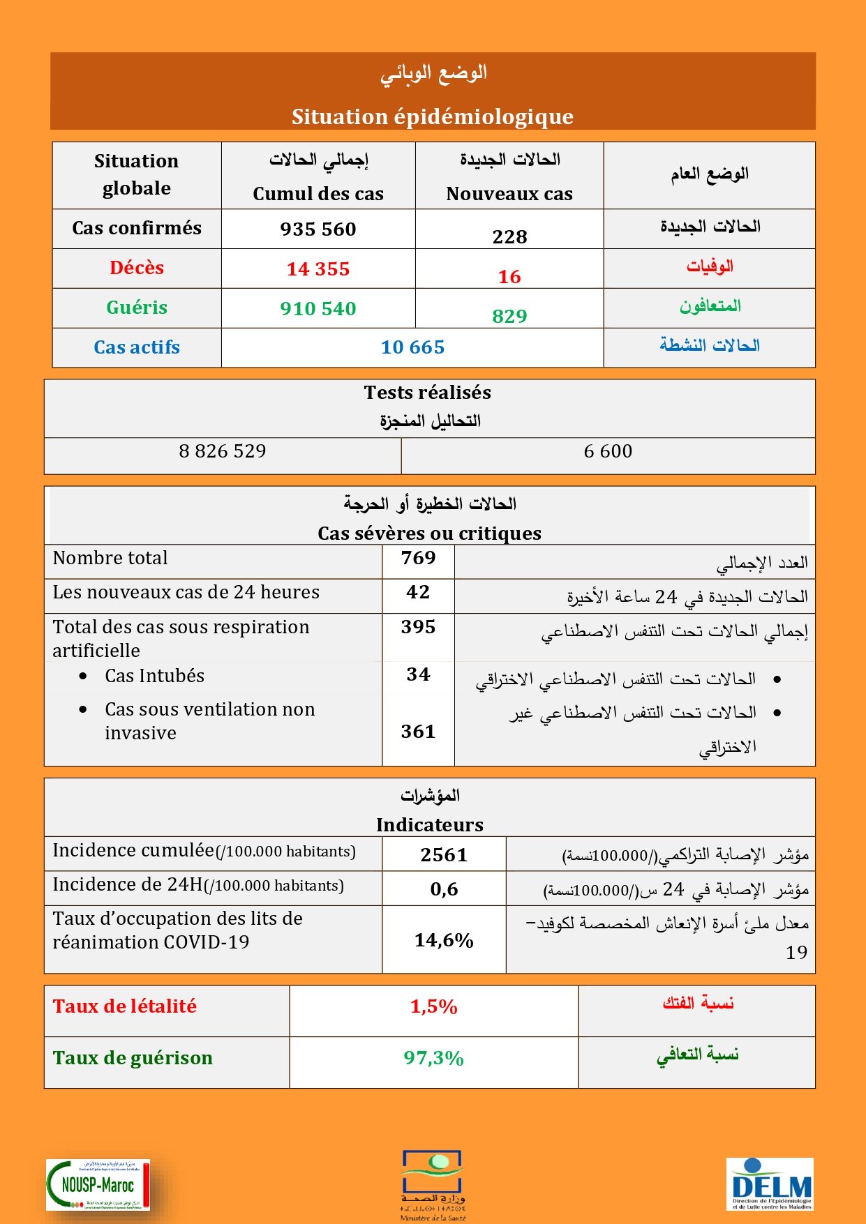 228 nouveaux cas soit un cumul de 935 560 cas à ce jour.