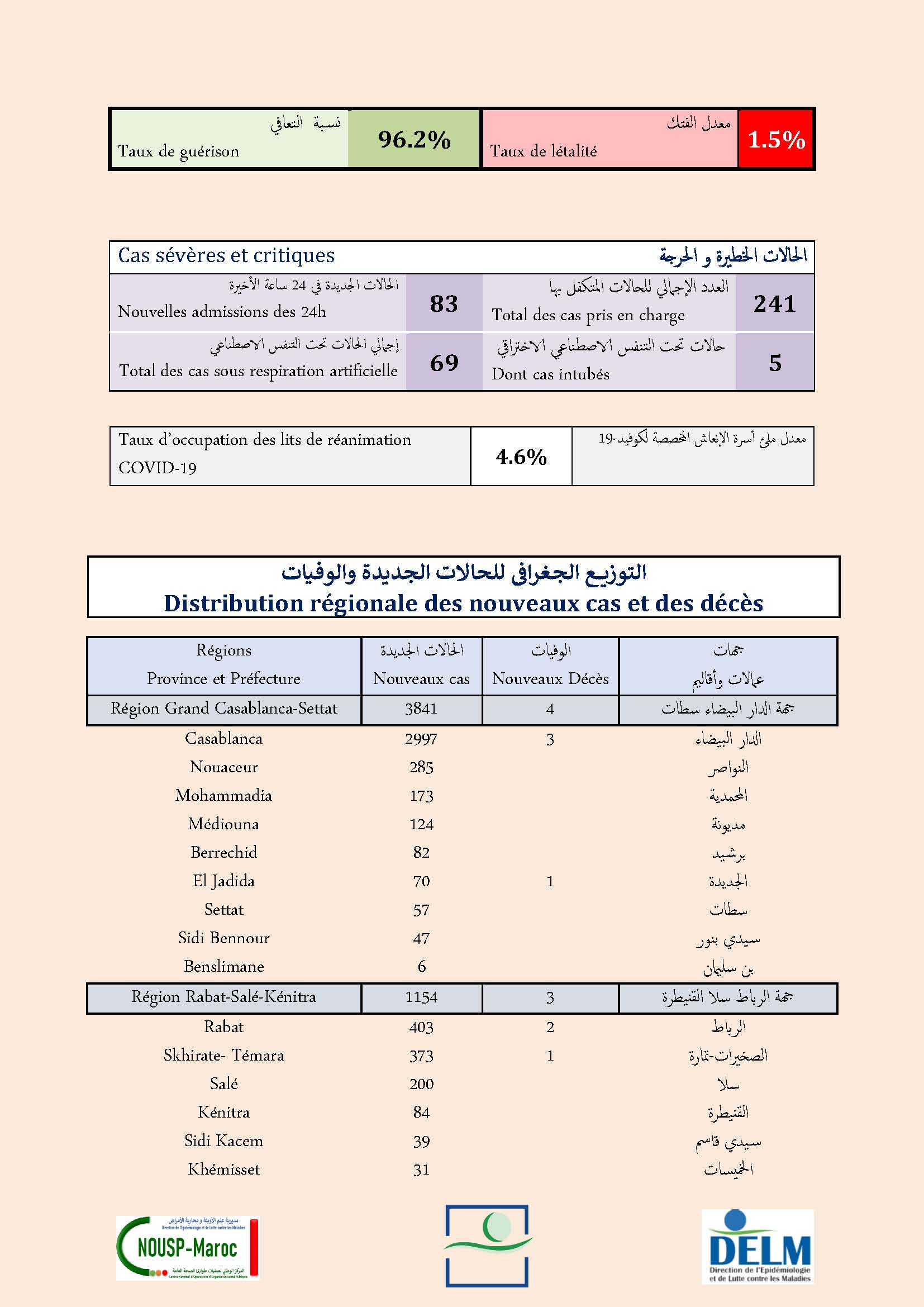 1.734 guérisons soit un cumul de 946.289 à ce jour.