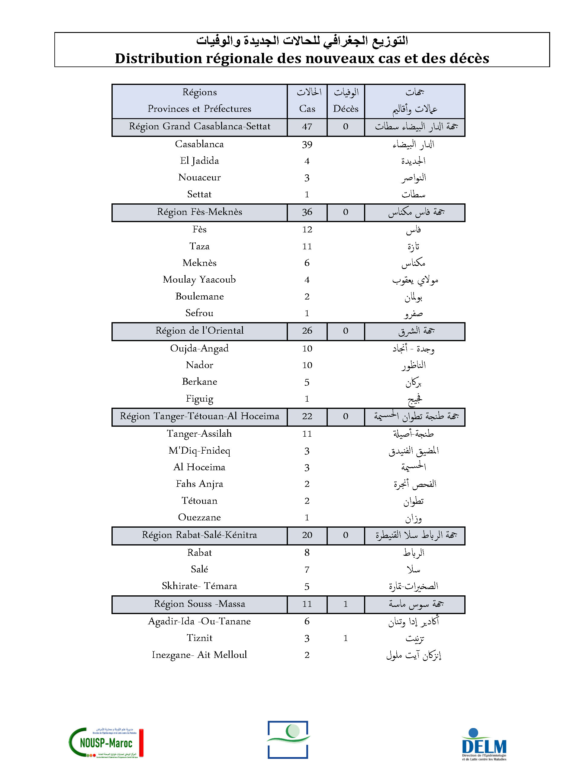191 nouveaux cas soit un cumul de 1.262.887 cas à ce jour.