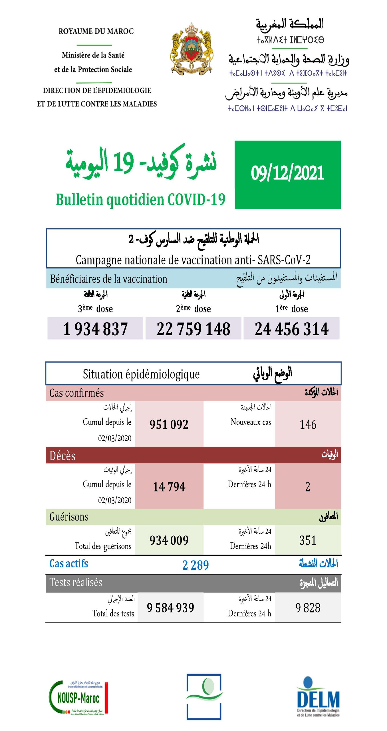 146 nouveaux cas soit un cumul de 951 092 cas à ce jour.