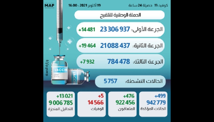Le nombre de primo-vaccinés a atteint 23.306.937, tandis que celui des personnes ayant reçu la 2ème dose s’élève désormais à 21.088.437, a précisé le ministère dans son bulletin quotidien sur la situation épidémiologique Covid-19.