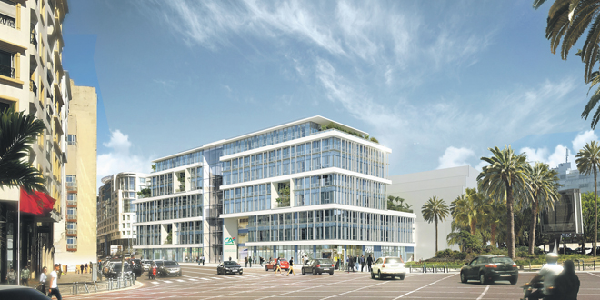 Conçu par les architectes Bridot Willerval et Omar Alaoui, le nouveau siège devrait allier qualité de vie et responsabilité avec un bâtiment conçu pour offrir une protection thermo acoustique, un éclairage naturel et une inertie thermique.