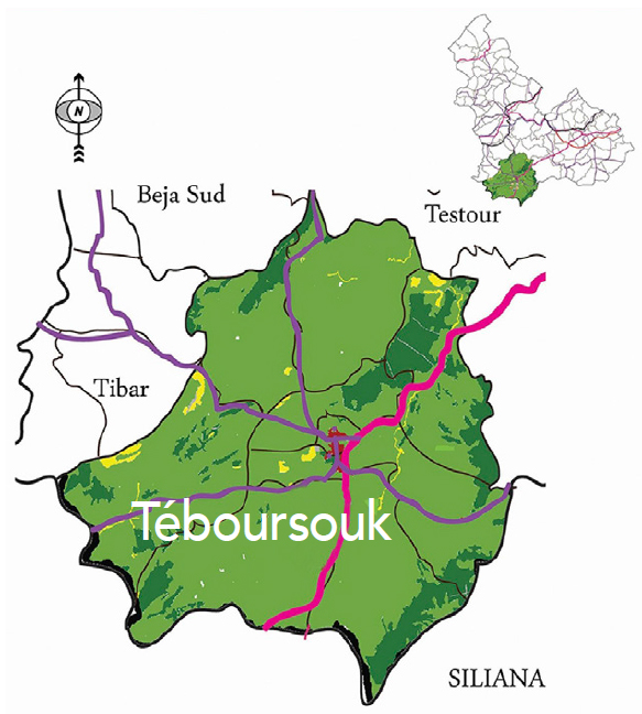 «J’ai puisé au fond de mes souvenirs d’enfant les représentations de la maison familiale comme elle était inscrite dans ma mémoire», nous dit Mahmoud Ben Abbes. «Une image sans doute plus délicieuse, mais comme je voulais qu’elle le soit aujourd’hui.» Sur une superficie de 250 m2 de bâti, en deux étages, cette demeure se veut accueillante et inspirante. Téboursouk, à près de 100 km de Tunis, est érigée au pied d’une colline élevée de 400 m. De la terrasse, on admire les oliveraies de la vallée de l’oued Khalled et l’étendue des champs. Dougga n’est qu’à 6 km. Classée par l’Unesco sur la liste du patrimoine mondial, c’est «la petite ville romaine la mieux conservée de l’Afrique du Nord.»