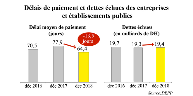 Les délais de paiement de 82 établissements publics sont suivis de près par la Direction des entreprises et établissements publics. Ceux-ci ont reculé de près de 14 jours à fin 2018 alors que les dettes échues ont atteint 19,4 milliards de DH