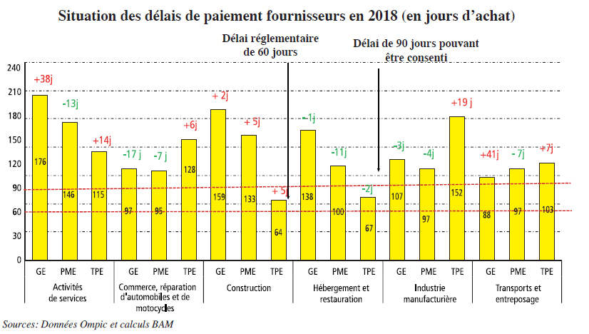 L’attente jusqu’à l’adoption des nouvelles mesures concernant les délais de paiement pourrait être très longue pour les TPE dans la construction et le transport. Le solde commercial, c’est-à-dire la différence entre les délais clients et fournisseurs, est négatif de 99 jours dans la construction et 123 jours dans le transport et entreposage selon les résultats de la dernière enquête de Bank Al-Maghrib. Les TPE opérant dans la construction règlent leurs fournisseurs en moyenne en 64 jours alors que leurs clients les paient en moyenne en 163 jours! En dépit des mesures prises par les autorités et des efforts consentis en matière de sensibilisation des opérateurs économiques, le problème des délais de paiement reste posé avec acuité, dénonce Bank Al-Maghrib dans son rapport annuel. Les premiers à en souffrir restent les TPE.