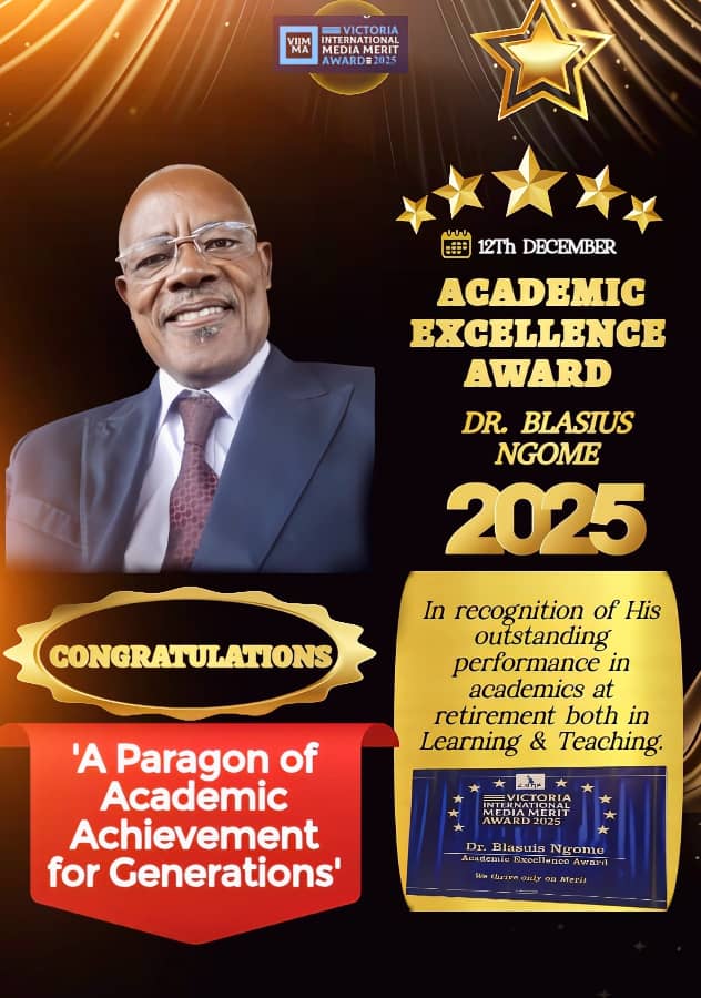 Le 12 décembre 2025 à Limbe, le Dr Blasius Ngome, éminent expert en communication d’entreprise et ex-directeur de la communication de la Sonara (Société Nationale de Raffinage), a reçu le prix d’Excellence Académique 2025 décerné par la Victoria Media Merit Awards (VIMMA). Cette distinction récompense son parcours académique et professionnel exceptionnel. Cette reconnaissance prestigieuse honore son engagement pour l’excellence académique et son influence dans le secteur de la communication. Après plus de trente ans de carrière à la Sonara, où il a notamment fondé le très acclamé Sonara Magazine, il a obtenu un doctorat en communication d’entreprise (mention Très honorable) à l’Université de Douala en 2025.Après une licence en lettres bilingues à l’Université de Yaoundé (1983) et plusieurs diplômes en communication (dont une formation au Royaume-Uni), le Dr Ngome a poursuivi ses études supérieures : un master en communication d’entreprise à l’Université de Buea (2023), où il a été major de promotion, puis un doctorat à Douala. Sa soif d’apprendre n’a pas faibli malgré la retraite.