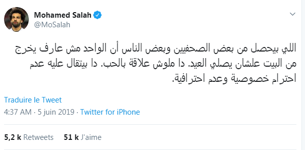 L’international égyptien a en effet été surpris, dans la matinée de ce mercredi 5 juin, par la grande foule et les médias, présents devant son domicile, dans la province « Al gharbia », au nord de l’Egypte, qui l’ont l’empêché de sortir avec son épouse et sa fille, pour effectuer la prière de l’Aïd comme l’indique mosaiquefm.net.