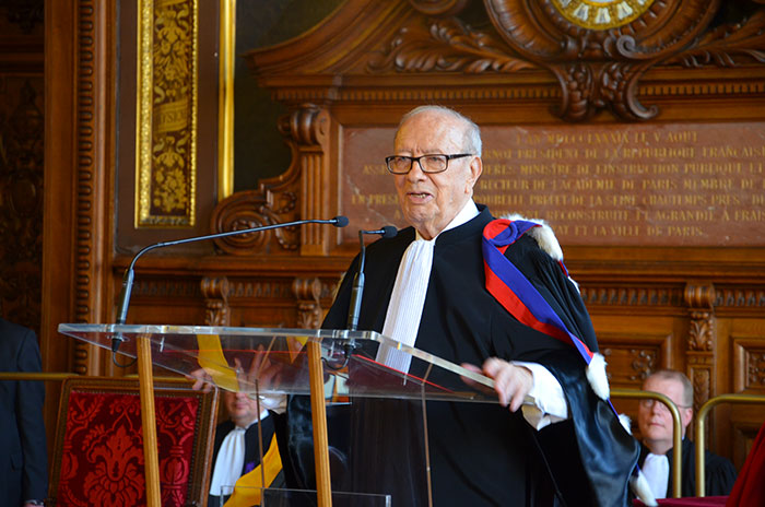 Le mardi 7 avril 2015 restera gravé dans la mémoire. Ce jour-là, l’ancien étudiant de la Faculté de Droit de Paris (1949 – 1952), devenu premier président démocratiquement élu de la Tunisie depuis des décennies était célébré par la Sorbonne qui lui décerné son doctorat honoris Causa.