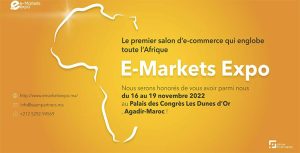 Selon les organisateurs, «E-Markets Expo» est le premier salon d’E-commerce englobant toute l’Afrique ayant pour but de créer un espace de rencontre entre des porteurs de projets e-commerce et des sociétés marocaines, africaines et internationales appartenant aux différents secteurs d’activité.