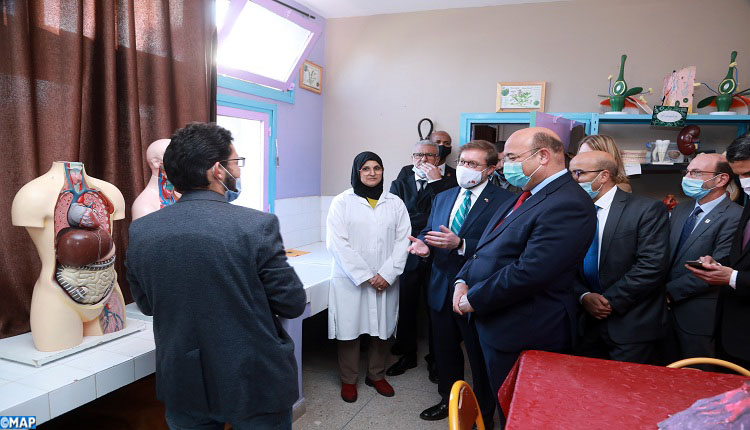 Cette visite a été l’occasion de s’enquérir du déploiement du modèle « Lycée Attahadi », principale composante du projet « Education Secondaire », au niveau de cet établissement scolaire en vue de rehausser son efficacité et sa performance et d’améliorer les apprentissages et les résultats scolaires des élèves.