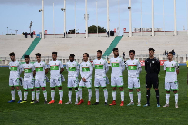 Le onze de l’Algérie : Bouhalfaya, Tougai (c), Bouguerra, Hamra, Khemaissia, Belarbi, Zorgane, Boudaoui, El Melali, Saadi, Benchaa