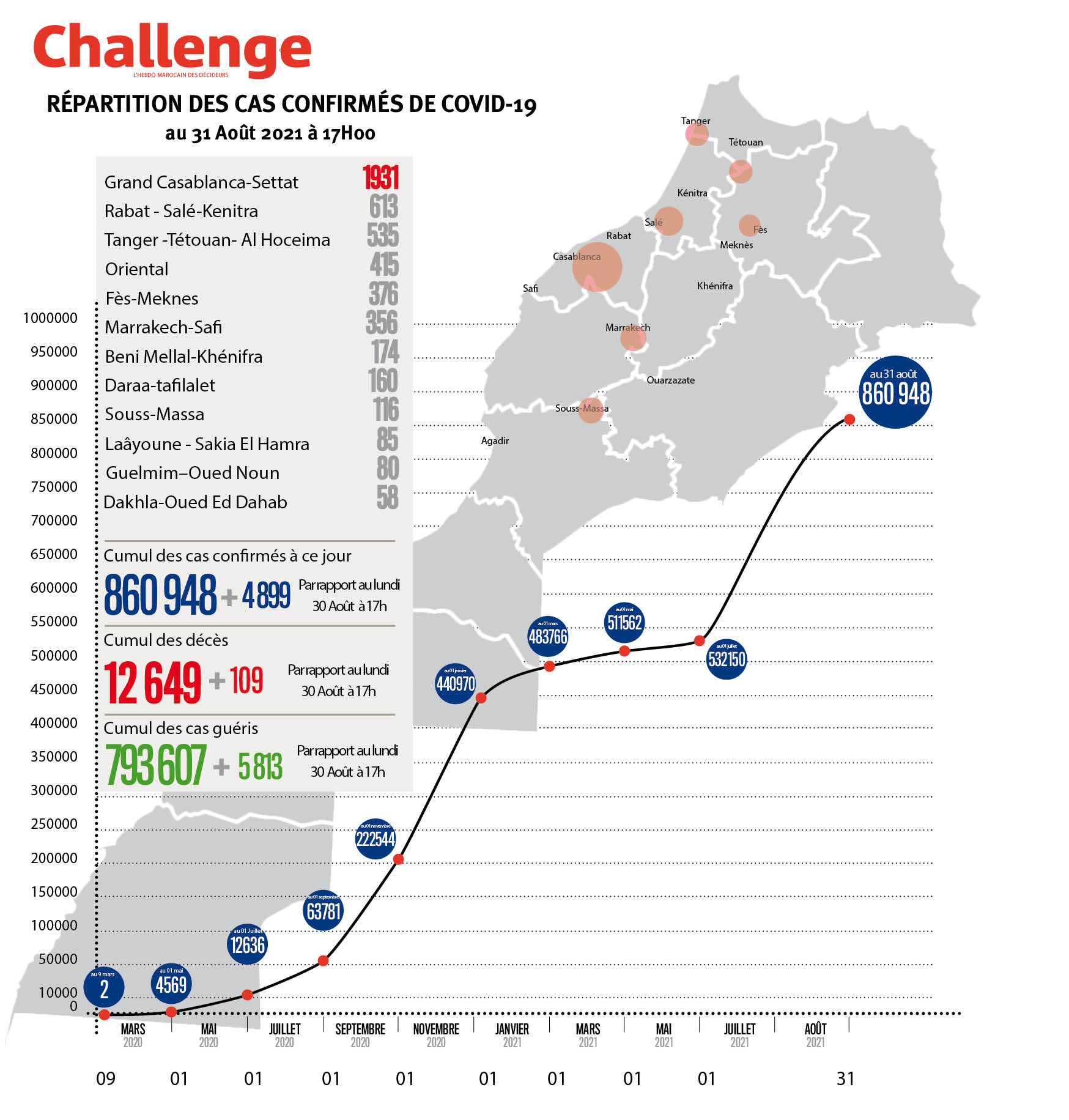 4899 nouveaux cas d’infection au coronavirus ont été confirmés au Maroc durant les dernières 24h, portant le nombre total de cas de contamination à 860.948, a annoncé le ministère de la Santé. Le nombre de personnes déclarées guéries s’est élevé à 793.607 avec 5813 rémissions supplémentaires, alors que le nombre de décès a étéAuteur: Karim Handaoui