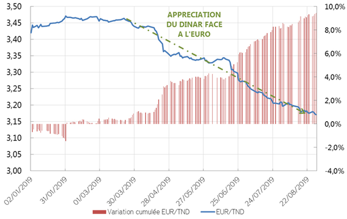 Graph A1. Evolution du taux EUR/TND depuis le début de 2019