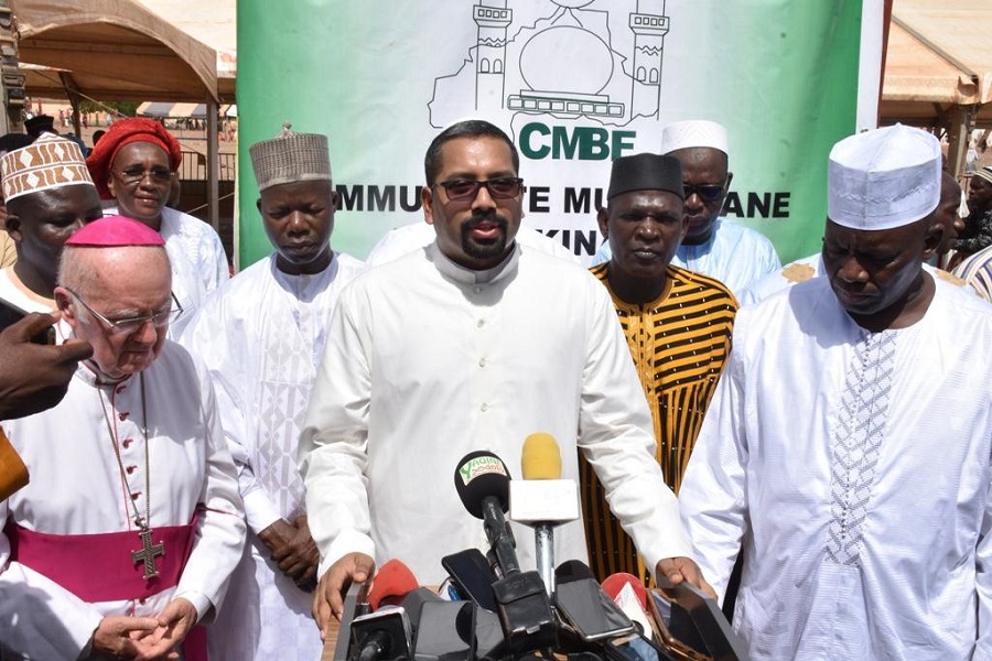 A cette célébration de la fête de la rupture du jeûne, le ministre en charge des affaires religieuses, Issaka Sourwema et le ministre en charge de la cohésion sociale sont venus au nom du gouvernement soutenir la CMBF. « Nous sommes venus apporter notre soutien à la communauté musulmane », indique M. Sourwema. Ce dernier dit être heureux de l’extraordinaire limpidité et pertinence du sermon de l’imam qui a prêché pour l’unité dans la diversité. Pour lui, c’est dans la différence que chacun peut apporter ce qu’il a de particulier, de fondamental de manière à construire une société unie. « Dans la société burkinabè qui est confessionnellement et ethniquement multiple, en réalité, nous devrions rechercher dans ces spécificités le dénominateur commun positif qui nous permet de vivre ensemble. Toutes les âmes et religions sont de même valeur. Sinon Dieu n’aurait pas permis que les différentes religions existent », affirme le ministre en charge des cultes. Le président de la CMBF d’ajouter : « C’est le seul pays où tu rentres dans une famille et tu trouves toutes les religions représentées. Nous n’avons aucun problème de vivre ensemble. C’est un don de Dieu », se réjoui Moussa Kouanda. Le chargé d’affaires du nonce apostolique, Abbé Boya Johny, au nom du pape François et du cardinal Philippe Ouédrago souhaite une bonne célébration de l’Aïd el Fitr à tous les musulmans. « Les Chrétiens et Musulmans doivent partager la joie et le pain. Dans la situation difficile du Burkina, avec la collaboration entre musulmans et chrétiens, nous avons confiance de pouvoir relever le défi, surmonter les difficultés avec la prière », pense Abbé Boya Jonhy.