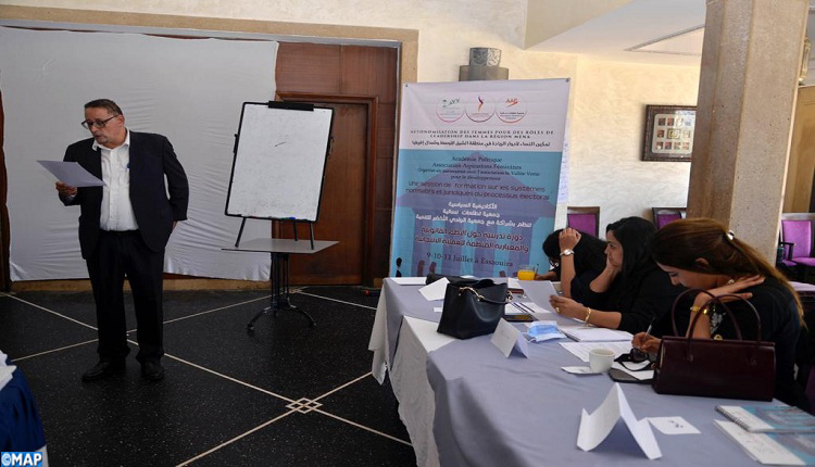 Cette session, qui connaît la participation de 35 femmes représentant cinq partis politiques et d’autres sans appartenance politique, issues des provinces d’Essaouira et de Ouarzazate, vise le renforcement des capacités des bénéficiaires en matière de connaissance du cadre juridique des élections conformément aux derniers amendements et aux mesures positives prises en faveur des femmes dans les systèmes électoraux.