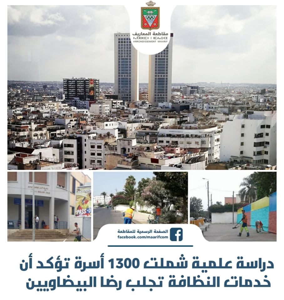 D’après cette étude, la population de plusieurs arrondissements était satisfaite de la propreté des quartiers de la ville, où le niveau de satisfaction dans certaines zones dépassait largement 70%, ainsi que les taux de satisfaction concernant les services de collecte des ordures ménagères et la propreté des espaces publics.