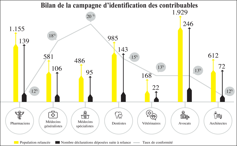 Au cours de l’année 2018, la Direction générale des impôts a mené une campagne d’identification des personnes exerçant une profession libérale (avocats, médecins, dentistes, architectes…) et qui ne déposent jamais de déclaration fiscale