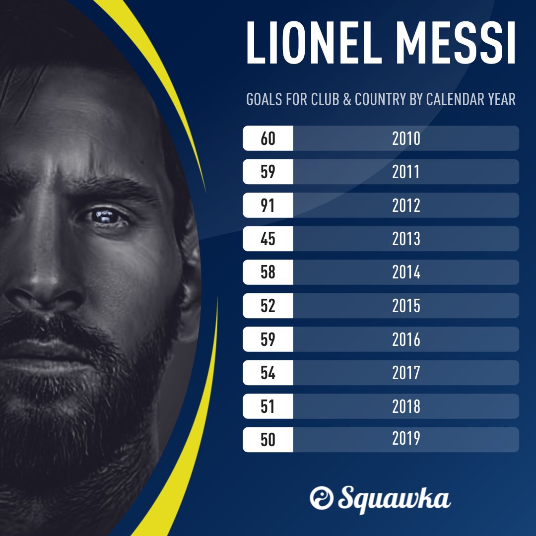 Il n’y a qu’en 2013 où l’international argentin n’a pas inscrit cinquante buts. Son compteur s’était alors bloqué à quarante-cinq. Lionel Messi ne cessera donc jamais d’affoler les compteurs…