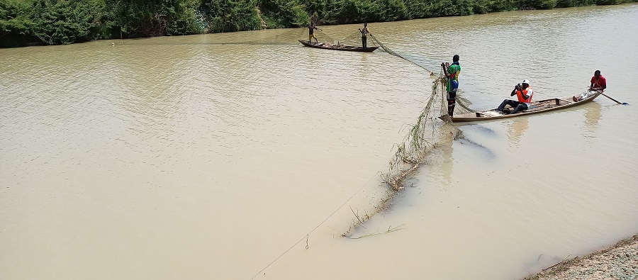 De l’autre côté du fleuve à Bagri dans le district de Lawra au Ghana, des pratiques empêchant la migration des poissons ont également été constatées. Il s’agit de l’utilisation d’engins de pêche non conformes aux normes, la fixation du filet sur toute la largeur du cours d’eau, l’utilisation de produits chimiques et la pratique de la culture maraîchère sur le long du fleuve. A cela s’ajoute la capture d’alevins. Toute chose que la directrice de la valorisation des produits halieutiques Solange Zoma a déplorée. Pour elle, ces engins de pêche utilisés sont interdits parce qu’ils empêchent non seulement le poisson de migrer, mais ils contribuent à la disparition de certaines espèces de poisson. Car a-t-elle relevé, les poissons migrateurs sont un maillon crucial de la chaîne alimentaire et jouent un rôle important dans la création de systèmes fluviaux sains et productifs. « Lorsqu’on capture les alevins, on supprime le cycle de reproduction de l’espèce », a-t-elle insisté. De l’avis du président des pêcheurs de Bagri Adama Traoré, l’achat des engins de pêche règlementaires n’est pas à la portée de tous les pêcheurs si bien que bon nombre d’entre eux préfèrent acheter des filets de petites mailles relativement moins chers. « Nous sommes prêts à abandonner les filets de petites mailles, si les autorités acceptent de nous accompagner dans l’acquisition des engins de pêche règlementaires», s’est engagé le porte-parole des pêcheurs ghanéens. Sara B. M. Bamie du département régional de la commission de pêche au Ghana a invité les pêcheurs à l’abandon de toutes ces pratiques qui ne répondent pas aux normes de la pêche.