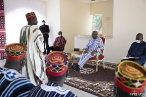 Le président du Faso, Roch Marc Christian Kaboré a également reçu en audience, une délégation des chefs de canton de la province du Boulkiemdé, conduite par Naba Saaga, chef de Konkistenga. « Beaucoup d’efforts ont été consentis dans le cadre du développement de la ville de Koudougou. Nous sommes venus pour le féliciter et l’encourager pour tout ce qu’il fait pour la Nation malgré la situation de l’insécurité », a indiqué, Naba Saaga chef de Konkistenga.
