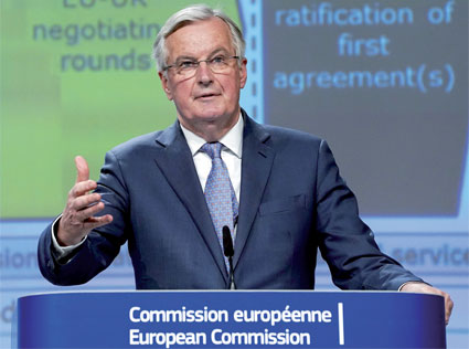 «Nous sommes prêts à proposer un accord commercial très ambitieux comme pilier central du partenariat», a indiqué le négociateur en chef de l’UE pour le Brexit, Michel Barnier, lors de la présentation à Bruxelles de la position de l’Union sur la future relation (Ph: AFP)