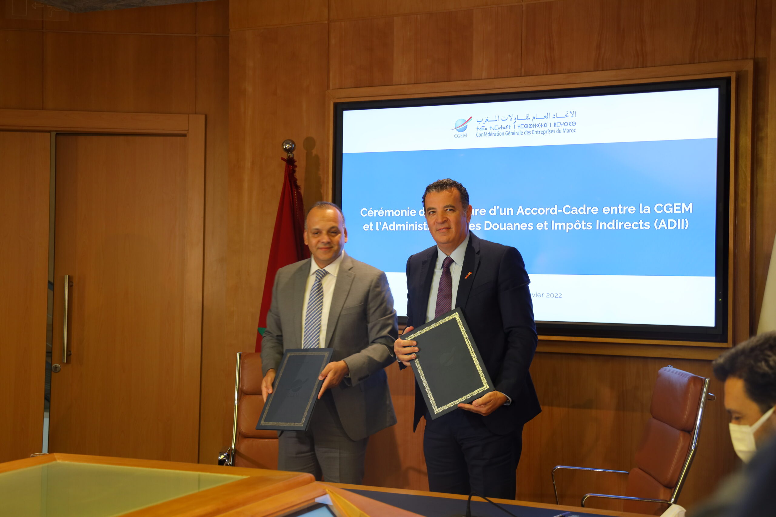 La Confédération générale des entreprises du Maroc (CGEM) et l’Administration des douanes et impôts indirects (ADII) ont récemment signé un accord-cadre visant l’amélioration du climat des affaires. Il s’agit d’un accord qui vient matérialiser le partenariat entre les deux institutions en faveur d’un accompagnement plus important des entreprises marocaines opérantAuteur: challenge
