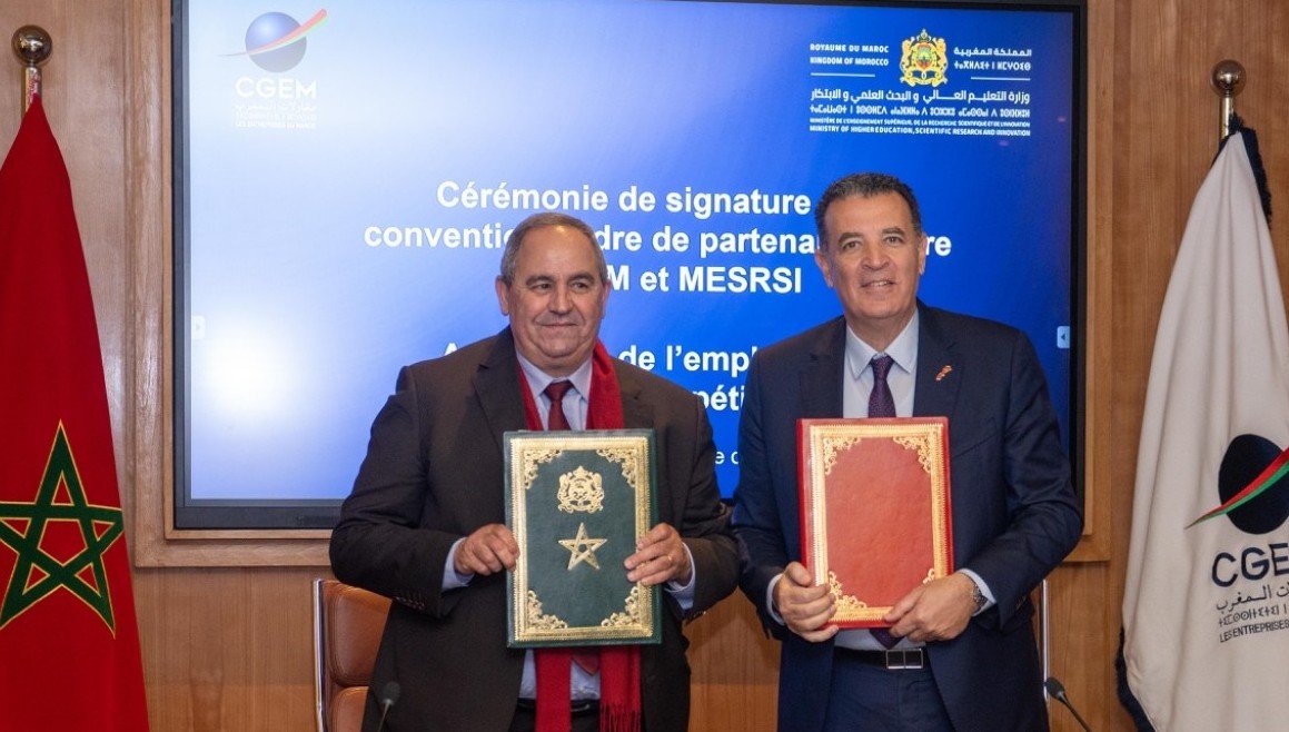 Le président de la CGEM, Chakib Alj, et le ministre de l’Enseignement Supérieur, de la Recherche Scientifique et de l’Innovation, Azzedine El Midaoui, ont signé, mardi 17 février à Casablanca, une convention-cadre de partenariat stratégique visant à renforcer durablement le rapprochement entre le monde universitaire et le tissu économique national.