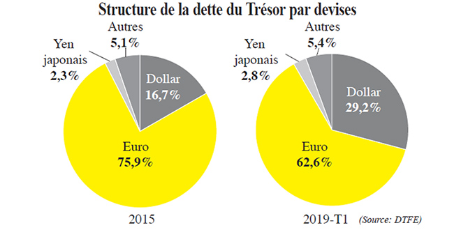 Si la sortie du Trésor à l’international cette année est toujours maintenue, le ministère des Finances reste peu loquace sur le timing et la devise dans laquelle l’opération sera réalisée. Plusieurs éléments seront pris en compte, surtout le coût. Ceci dit, le ministère des Finances pourrait aussi bien vouloir accélérer la convergence de la structure de la dette du Trésor vers le panier de cotation du dirham. A ce titre, au moins une des deux levées programmées en 2019 et 2020 pourrait s’effectuer sur le marché dollar.