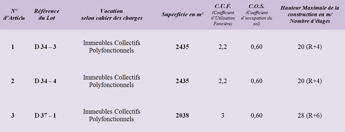 Les références et les caractéristiques techniques desdits lots sont indiquées ci-après: