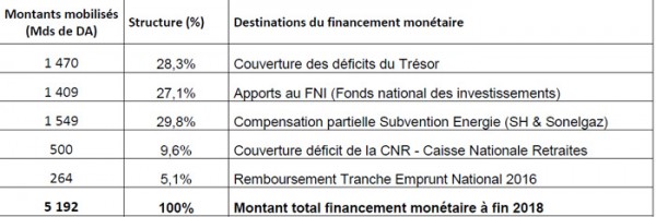 Le montant du financement non conventionnel consacré en 2018 au déficit de la CNR s’élevait à 500 Mds de DA. Selon les déclarations des responsables de la CNR, ce montant s’élèvera à plus de 600 Mds de DA en 2019.