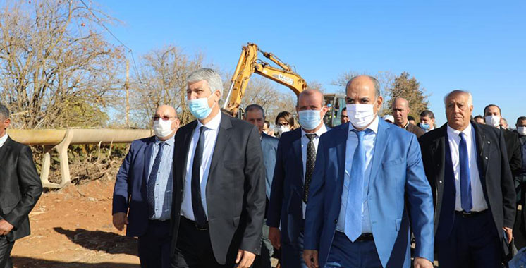 Au niveau de la commune territoriale de Madagh, province de Berkane, le Ministre a pris connaissance du programme de réhabilitation du périmètre de grande hydraulique, et a lancé les travaux de réhabilitation du réseau d’irrigation gravitaire du périmètre irrigué de Moulouya. Ce projet vise à réhabiliter les zones délabrées du système d’irrigation gravitaire des périmètres irrigués à une distance de 11,3 kilomètre, pour un coût de 21,2 millions de dirhams.