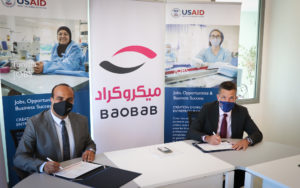 Dans le contexte actuel généré par le coronavirus, Baobab Tunisie leader parmi les nouvelles institutions de Microfinance et USAID, Agence des États-Unis pour le développement international s’unissent pour le lancement officiel du programme SANAD destiné aux entrepreneurs fortement impactés par la crise du Covid-19, et ce afin de les aider à prendre action durant ces temps difficiles en leur permettant de maintenir et relancer leurs activités en vue de la propagation de la pandémie, ainsi que le maintien et la création des emplois. La cérémonie de signature entre les deux institutions s’est tenue le 14 octobre représentée respectivement par M. Sehl Zargouni Directeur Général de Baobab Tunisie et M. Peter Riley, Directeur de Mission USAID Tunisie.