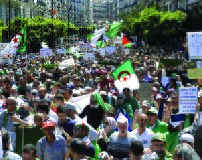 Le peuple veut sa transition, allez vous-en !» ; «Gaid Salah, ne règle pas tes comptes sur le dos du peuple», «Non au régime militaire», «Djoumhouria machi caserna» (Une République, pas une caserne), «Primauté du politique sur le militaire : Etat civil, Etat de droit, justice indépendante», «On a dit nouvelle république, pas nouvelle dictature», «Ni Gaid ni DRS, le peuple est la base», «Mon général, ta feuille de route c’est du pipeau ; le peuple n’est pas dupe pour tomber dans ton piège constitutionnel», «Ya Gaid Salah, la constitution n’est pas un menu à la carte», «Ici c’est l’Algérie, ce n’est pas l’Egypte, non à la dictature, Gaid dégage !» ou encore cette belle trouvaille en référence à Sissi : «L’Algérie est InSississable».