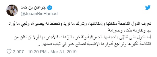 Le Cheikh Jaw3ane s’est moqué de ces Nations qui sont fières de leur surface géographiques, alors qu’elles devraient se préoccuper de la déchéance de leur pouvoir régional au détriment d’ « ennemis cachés dans les habits d’amis », en allusion à l’Arabie Saoudite et éventuellement, ses alliés, entre autres l’Egypte.