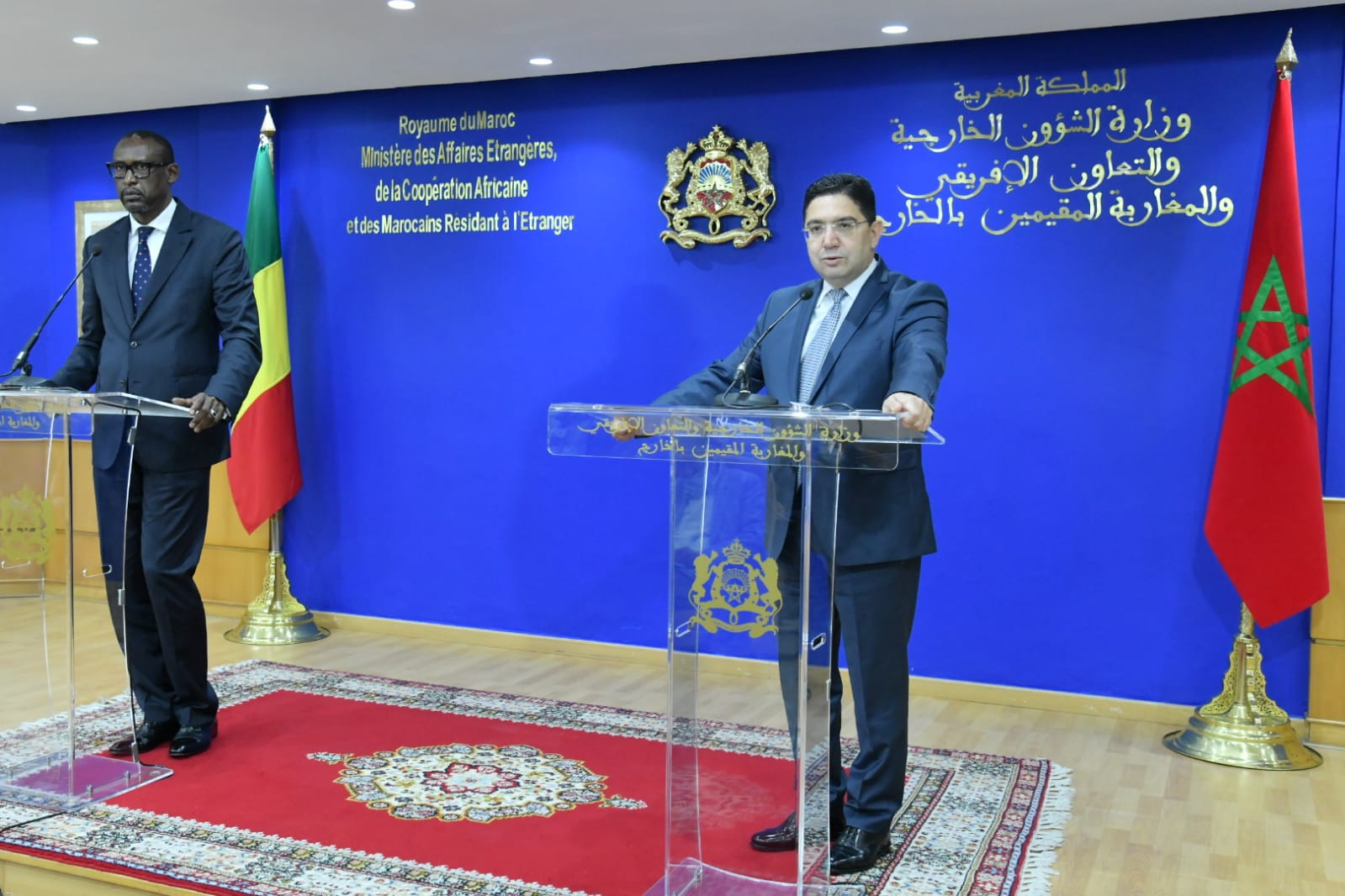 Le ministre marocain des Affaires étrangères, Nasser Bourita, a reçu, lundi à Rabat, son homologue malien , Abdoulaye Diop, porteur d’un message écrit du président de la transition du Mali, M. Assimi Goïta, au Roi Mohammed VI.Abdoulaye Diop a par ailleurs précisé que le gouvernement malien est engagé à tout mettre en œuvre pour retrouver et traduire devant la justice les responsables du meurtre des deux camionneurs marocains au Mali.