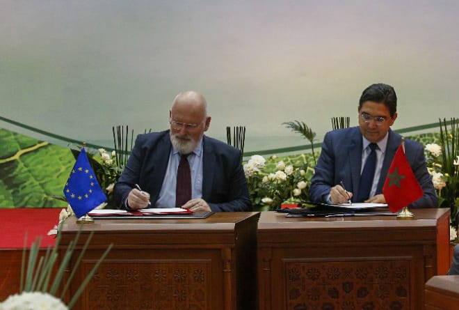 Le Maroc et l’Union européenne (UE) ont signé, mardi à Rabat, un Mémorandum d’entente portant sur l’établissement d’un Partenariat vert avec l’UE, ce qui fait du Royaume le premier pays à conclure un partenariat de ce type avec Bruxelles.Paraphé par le ministre des Affaires étrangères, Nasser Bourita, et le vice-président exécutif de la Commission européenne et Commissaire pour la politique d’action sur le climat, Frans Timmermans, le mémorandum a pour objectif d’établir un Partenariat vert entre les partenaires dans les domaines de la lutte contre les changements climatiques, de la transition énergétique, de la protection de l’environnement et de la promotion de l’économie verte et bleue.