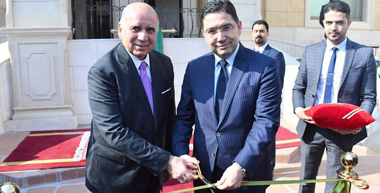 La cérémonie d’inauguration a été présidée par Nasser Bourita ministre des affaires étrangères, de la coopération africaine et des marocains résidant à l’étranger et son homologue Iraquien Fouad Hussein. Cette réouverture de l’Ambassade marque en effet une nouvelle ère dans les relations diplomatiques entre les deux pays.