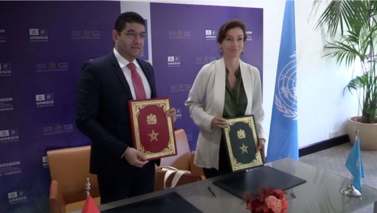 Le Maroc et l’UNESCO ont signé, mardi à Rabat, un accord-cadre de partenariat visant à mettre l’expertise marocaine en matière de protection du patrimoine à la disposition d’autres pays d’Afrique subsaharienne.En vertu de cet accord-cadre, paraphé par le ministre de la Jeunesse, de la Culture et de la Communication, Mohammed Mehdi Bensaid, et la Directrice Générale de l’UNESCO, Audrey Azoulay, les deux parties conviennent d’apporter leur expertise à des activités de renforcement des capacités dans le domaine du patrimoine mondial, de celles des acteurs de la lutte contre le trafic illicite des biens culturels ainsi que des spécialistes des musées pour contribuer à la lutte contre le trafic illicite de ces biens et à la conservation des collections, à l’établissement d’inventaires et à la promotion du rôle des musées en Afrique pour les sociétés.