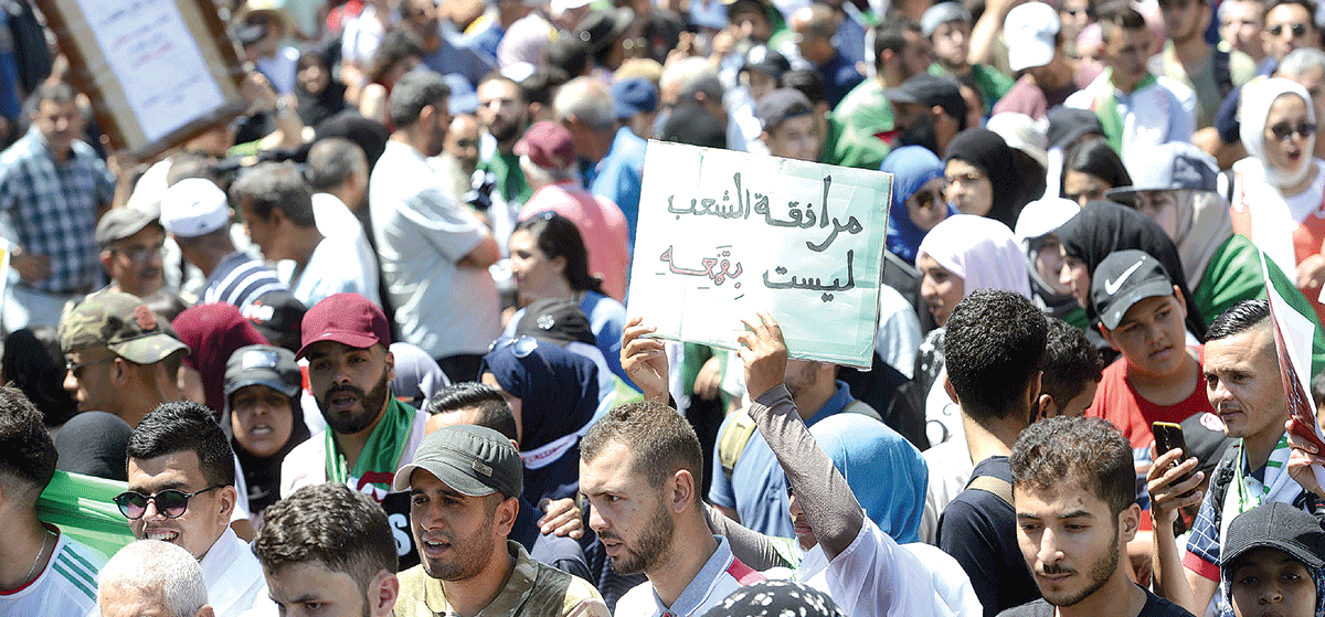 La marée humaine, qui ne faisait que grossir à mesure que la procession avançait, s’est mise ensuite à crier : «Sahafa horra, adala mostakila!» (Presse libre, justice indépendante), «Djoumhouria, machi caserna !» (Une République, pas une caserne), «Gaïd Salah dégage !» «Y en a marre des généraux»… Rue Larbi Ben M’hidi, les étudiants s’écrient : «Libérez Bouregâa», «Ya Amirouche, ya El Haouès, moudjahidine fi lahbess» (O Amirouche et Si El Haouès, des moudjahidine sont en prison), «Makache intikhabate ya el issabate» (Pas d’élection avec les gangs), «El yed fel yed, ennehou el issaba wen zidou el Gaïd» (Main dans la main, on chassera la bande et on ajoutera Gaïd Salah)…