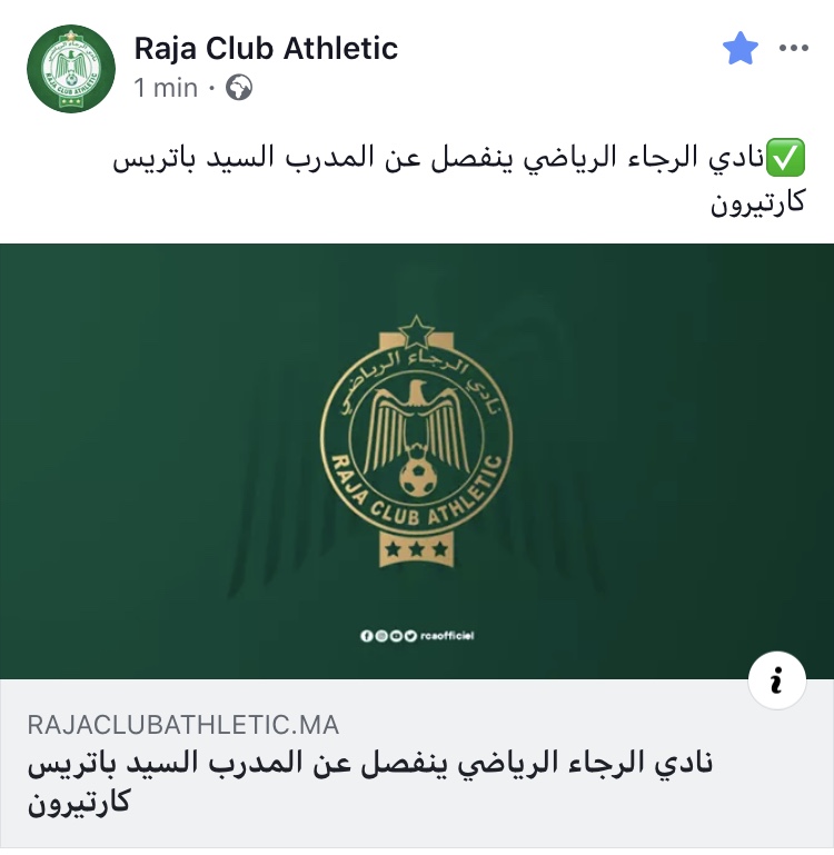 Le Raja de Casablanca a annoncé, lundi, le limogeage de son entraîneur Patrice Carteron, 12 jours avant le derby face au Wydad.