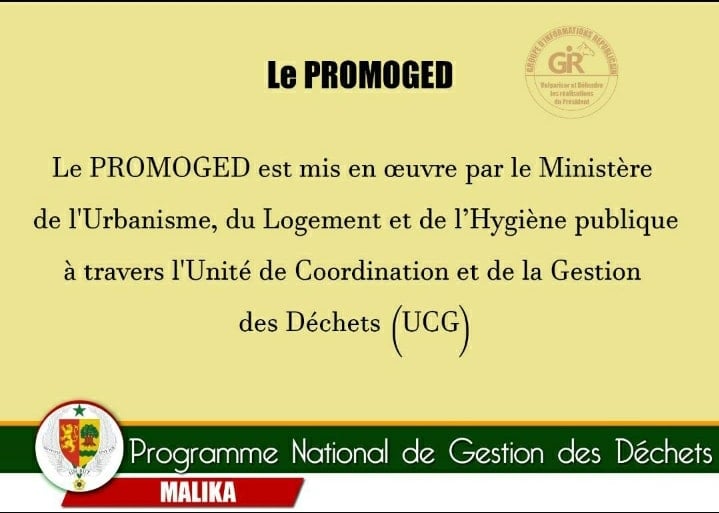 Le Projet de promotion de la gestion intégrée et de l’économie des déchets solides du Sénégal (PROMOGED) a été lancé, ce jeudi 24 juin, par le président Macky Sall, à Malika (banlieue dakaroise).Doté d’un budget de plus de 206 milliards f cfa, le PROMOGED cible spécifiquement les Pôles de Dakar et Thiès (ouest), le Pôle nord (Matam et Saint-Louis) et le Pôle sud (Ziguinchor, Sédhiou et Kolda).